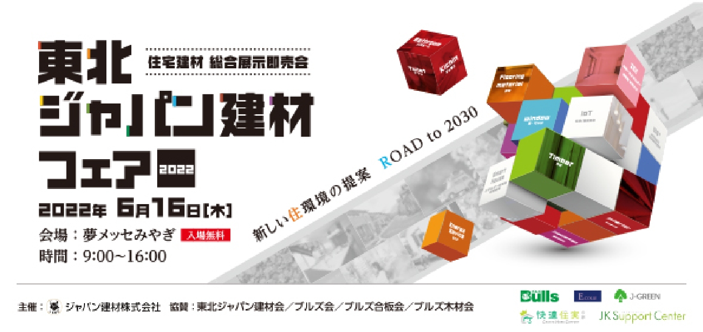 2022年以前も何度かプレゼンにお声がけいただいていた大手はいたようですが採用されず、2022年度のプレゼンにて初めて受注いただいた案件です。様々な建材屋さんが集合して行なう販売促進イベントなので様々な組み合わせ方法で様々な需要がある、を表現する為にルービックキューブをモチーフにしました。